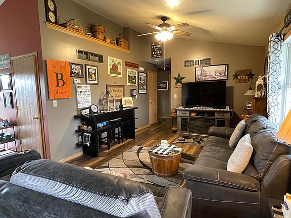 Check out this country charmer! A 3 bedroom, 2 bath ranch style home on a full basement with 2 car attached garage. Open dining to kitchen and living room and features cathedral ceilings. The master bedroom was 2 smaller bedrooms and now a very nice large room. There is a 3rd bedroom in the basement but could be changed to a family room or rec room. One half of the basement is finished and the other half is storage and mechanicals. More of this basement could be finished and you would still have plenty of storage. Interior and exterior sump pumps. New water softener in Sept, 21 and newer vinyl plank flooring in living room, dining area, and kitchen. New garage entry door Sept. 22. A large shed, fenced back yard, paver fire pit area, and a nice large deck with retractable awning for entertaining. Seller reserves curtains. Kitchen appliances are included as well as the garage refrigerator. Schedule your showing today!