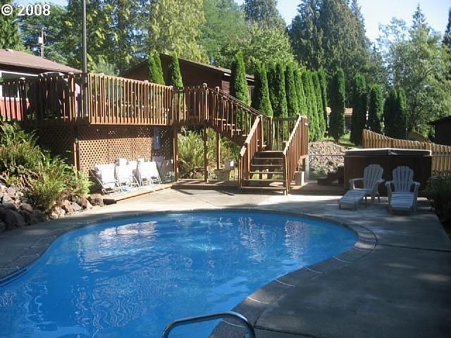 Oversize 2 car detached garage, a deck leading to and 15,000 gallon underground pool with hot tub. Home is surrounded buy large trees a must see!