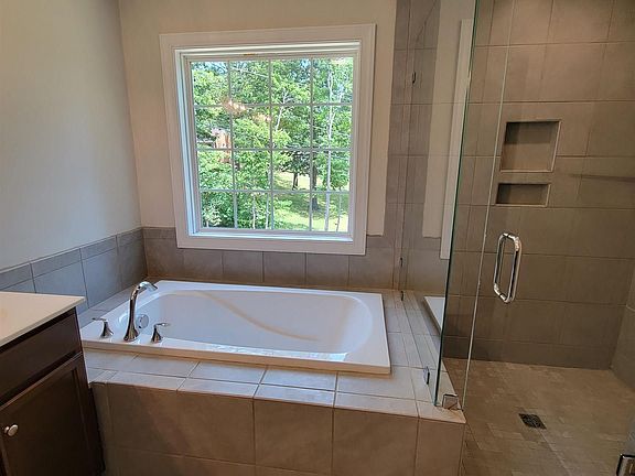 NEW CONSTRUCTION! Please find information below and pictures attached for our Dovercroft style home which offers 2450 square feet above grade, and 9’ framed walls on first floor with smooth drywall finish. This house plan incorporates luxury vinyl plank on the entire main living level, ceramic tile in the baths and laundry, oak treads to the second floor if applicable, and carpet throughout remaining areas. The master shower offers ceramic tiled walls and floor! Premium Tahoe cabinets by Timberlake in the kitchen make the home even more beautiful. The kitchen and bath counter tops are luxurious granite. Upgraded trim in all finished areas. Crown molding can be found in the dining room and master bedroom, as well as a chair rail with wainscoting in the dining room. The exterior finishes consist of double-hung windows, brick, siding, and architectural shingles.