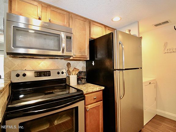 Cute as a button and Move-in ready! This one bedroom condo lives large with all the right appointments. Granite countertops, stainless steel appliances, custom built-in shelves in laundry/pantry. Wood-look tile floors throughout and carpet in the bedroom. Custom built-in twin size Murphy bed doubles as a beautiful bookshelf, genius!! Concrete bathroom counter-top with undermount sink really gives this spacious bath an updated style! Great location, just a couple minutes to I-295 and convenient shops. 20 minutes to downtown and the beaches. MULTIPLE OFFERS. All offers due in by Sunday, 8/8, 6:00 pm