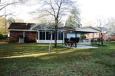 Traditional brick ranch home has been updated and is move-in ready. Kitchen has breakfast bar, solid surface counter tops and all appliances including microwave, dishwasher and refrigerator will pass with sale. Kitchen opens to dinning area, den and sunroom as well. Home features plantation shutters throughout and master suite has large walk-in cedar lined closet. Front yard has sprinkler system and back yard has flowering trees, covered patio with swing and an outbuilding for plenty of storage.