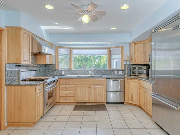 Gorgeous, spacious home w/cooks kitchen, finished basement, pool and covered deck. Remodeled kitchen boasting Viking, stainless steel appliances: gas range, built-in fridge and dishwasher. Dining room w/wood floors and slider to deck and pool area. Formal living room w/gas fireplace. Huge family room w/wood burning stove, full bath and slider to covered deck. Large bonus room down w/exterior door. Pool house and tool shed in backyard. [Home Energy Score = 4. HES Report at https://rpt.greenbuildingregistry.com/hes/OR10073252]
