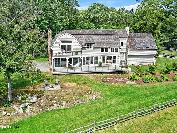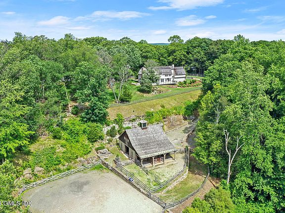 Shingle style gem with chic horse stable. Private oasis on 2.82 acres with views over 186 acre open space*. 60-minutes to NYC. Quality build (Tallman Builders) and barn (custom) both with cedar roofs, copper gutters. Glass doors all across back of house open onto large deck for fabulous indoor/outdoor flow and entertaining groups of any size. Kitchen serves up La Cornue range, 16+ ft ceiling in breakfast area, antique beams, custom cabinets, walnut island with second prep/bar sink. Primary suite with balcony. Whole house generator. Both city/well water. 1,728 sq ft three stall barn designed for 24 hr. turnout. Hay loft/storage. Riding ring. Existing water, electricity, elevated design allow for possible future conversion for all enthusiast's dreams. Two possible pool sites. *Property is adjacent to Brett Woods, a 168 acre open space conservation area. Miles of trail networks provide the perfect place for dog walking, hiking, mountain biking, horseback riding. Trail entrance is at the end of North street. EXCLUSIONS: Horse sculpture on right of driveway, small dogwood tree in left backyard, and small tree in front of stone patio.