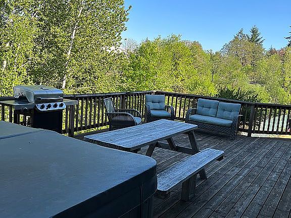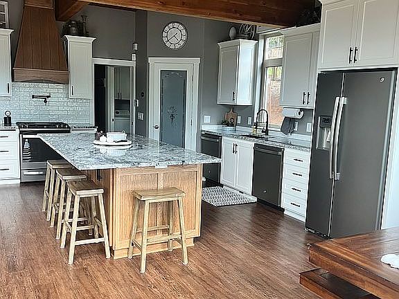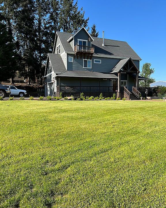 Custom Built Home with Views and Guest house/ Shop on 1.58 acres! First floor interior features include remodeled kitchen, large open Island, custom cabinetry, laminate wood floors throughout main level, 34’ cathedral vaulted ceiling, exposed wood beam construction, stone wood burning fireplace and half bathroom. Second floor interior features three bedrooms, two bathrooms, office/sitting area overlooking first floor, spiral staircase. Third floor features 32' x 24' loft overlooking first floor, deck, vaulted wood ceilings with wood beams, great entertaining area. Home also has central vacuum system, A/C, alarm system. Exterior features include a wrap around covered porch, exposed aggregate patio, 24x16 deck, landscaped front & backyards with UGS system and very secluded.