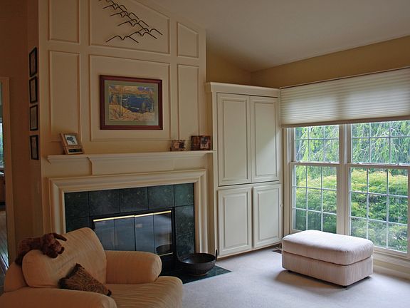Beautiful home on a private lot in desirable Rolling Meadows Subdivision. Swimming, tennis, sidewalks, children's play area and clubhouse make this an ideal family neighborhood. Large main floor master suite, cathedral ceilings, gorgeous double sided fireplace faces into the kitchen and great room, huge eat-in kitchen with sitting area by fireplace, first floor laundry, lovely built in TV cabinet, built in bookshelves and central vacuum. The floor to ceiling windows showcase the beautiful back yard with a two-level patio, inground sprinkler system, peaceful pond and a Brand New Roof!