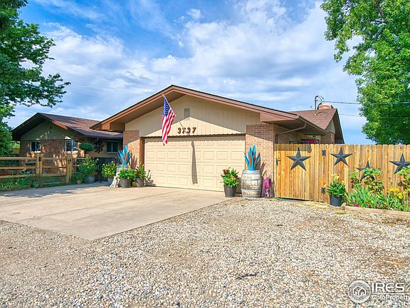 Welcome to this beautiful home on a fabulous 5-acre property boasting unobstructed, gorgeous mountain views, water rights and NO HOA!! This well maintained 3 bed/3 bath, brick ranch with 2 spectacular sunrooms, is designed so that you & your family can spread out & enjoy country living but still be close the city. There is a lovely, private front patio & large trees in the park-like, front yard oasis, providing shade for those hot days. The backyard has a hot tub, large garden area, lots of fruit trees that bear fruit, and a huge raspberry garden. There are large pastures for horses and livestock or to grow hay. There is a new shed and other outbuildings/loafing shed. Home has a new roof, new entry & kitchen flooring. Close to downtown Loveland, I-25, shopping and schools.