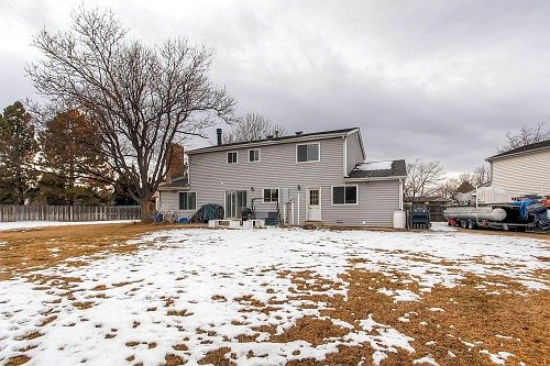 Enormous almost 1/2 acre lot in cul-de-sac. Open kitchen with huge breakfast bar with built in swivel stools. Great condition. All 4 bedrooms upstairs, full unfinished basement. Yard includes private basketball court, storage shed, garden area, dog run. Newer roof, newer windows, updated mechanicals, large laundry room, mudroom. Cherry Creek schools!