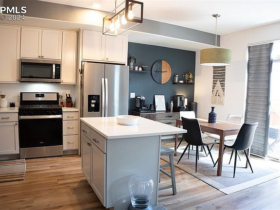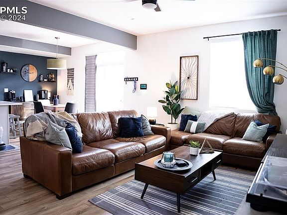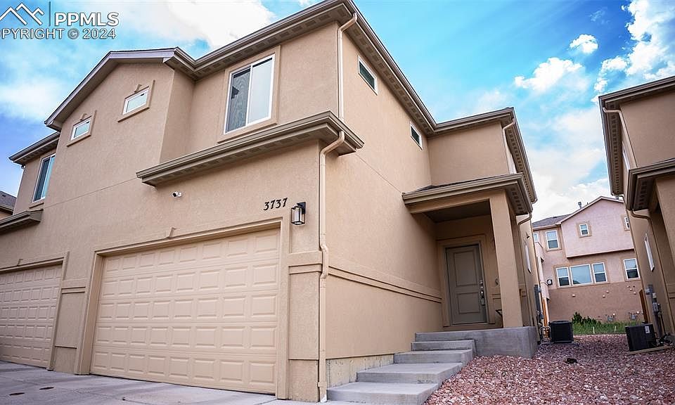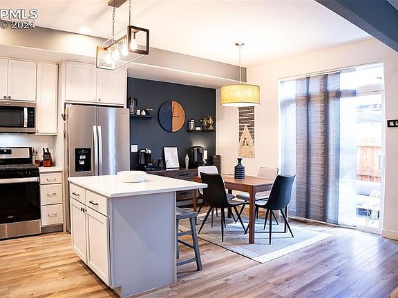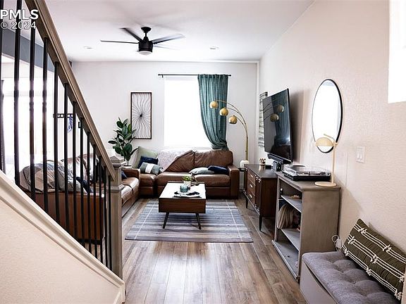 Take a look at this beautiful 3 bed, 2.5 bath, 2 story townhome built in 2020 and meticulously kept in beautiful condition both inside and out. Main level features open concept living and dining space with high ceilings and natural light. Say goodbye to builder grade because the kitchen boasts upgraded cabinetry and countertops along with a custom stool height island, adding to the conversational layout. Private, fenced in patio area has a pergola along with turf and rock landscaping make enjoying the outdoor area a low maintenance dream. Upstairs you will find all 3 bedrooms and laundry area with plenty of storage and washer and dryer included. Each room has a remote controlled ceiling fan. Primary bedroom is a cozy, luxurious suite with vaulted ceilings and attached bathroom leading to a large walk in closet with a window that allows natural light into the spa like bathroom. Easily accessible from Academy Boulevard, Powers and I-25, close to several military installations, this townhome in Harrison School District 2 is near by shopping, dining and recreation.