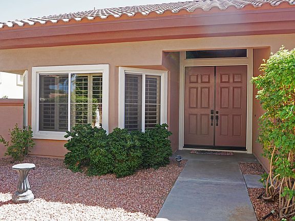 Great Room SOLITAIRE Model With 3 Bedrooms, 2 Baths Remodeled Like You Have Never Seen! Elevated Golf Course Lot With Mountain & Fairway Views. The Rear Yard Is An Entertainer's Delight With A Custom Pebble Tec Pool, Spa With Waterfall Spillway & An Electric Awning. The Interior Has 12-Foot Coffered Ceilings With Crown Moldings, Brazilian Cherry Wood Flooring, Custom Lighting & Shutters. Remodeled Kitchen With All Stainless-Steel Appliances And Custom Upgraded Cabinetry, Granite Counters In The Kitchen With Custom Backsplash & Granite Counters In All The Baths & In The Extended Laundry Room. This Home Has Great Curb Appeal With Stack Stone Facade & Custom Wrought Iron Gates Leading To The Private Courtyard, & Double Door Entry. The Master Suite Has A Private Courtyard & Large Walk In Closet. 2 Car Garage Plus Golf Cart Garage With Epoxy Flooring. There Is A Newer AC Unit, New Windows On The View Side Of The House & An Upgraded Sliding Door Leading To The Patio