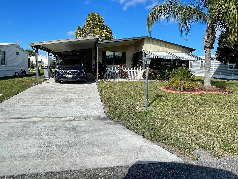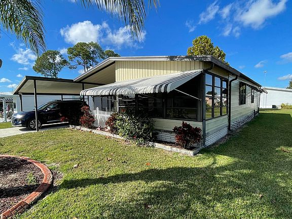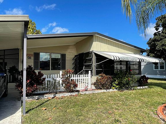 This is a beautiful, well maintained, furnished, 2 bedroom, 2 bath, double wide with a carport. This home has a big kitchen with updated appliances and plenty of space for the large dining table. New flooring throughout. The living room is large enough to entertain with a connecting porch with glass windows and screen. The master bedroom is updated with a custom built easy step-in shower. There also a nice covered front screen patio, additional open air patio, enormous storage room/ laundry, and a large painted driveway. Tons of updates.