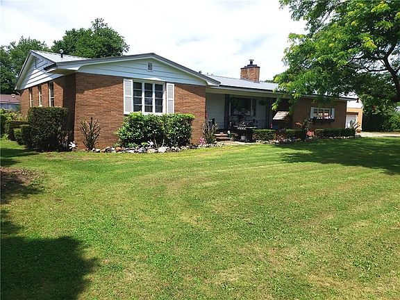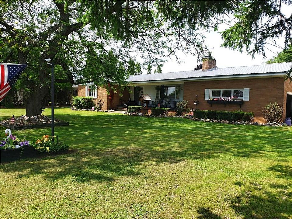 This 2088 sq. ft., 2-bedroom/2-bath brick ranch is located in the Town of Dunkirk and has been well maintained with low taxes. It features solid wood kitchen with plenty of cabinet and counter space; 14 x 18 family room with fireplace where you could install a ventless gas insert; 14 x 16 master bedroom with full wall closets; 2nd bedroom is 14 x 14 with full wall closets; built-in drawers in hallway; hardwood floors underneath carpets; newer metal roof on house and detached garage; new furnace and hot water tank; 28' covered front porch; attached one-car garage; detached 38 x 38 2/3-car garage with partially finished 2nd floor, heated, makes a great workshop; fenced backyard; 10 x 10 storage shed; plenty of parking for at least 6-8 cars. Call soon.