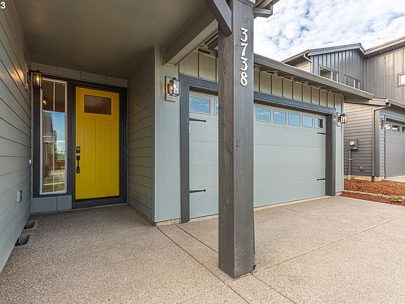 Single-level living! White mission shaker style cabinetry, quartz slab countertops in kitchen and bathrooms. Delta Woodhurst stainless steel bathroom plumbing fixtures with undermount sinks. Kitchen features stainless steel Whirlpool 5-burner gas cooktop, wall oven, wall microwave, dishwasher and chimney hood vent. Gas fireplace in great room with farmhouse style mantel. Upgraded flooring and lighting throughout home. Fenced with gate, front and rear landscaping with sprinkler system on timer. Tankless water heater, central A/C, Earth Advantage Certified with available Energy Bill Guarantee.
