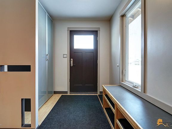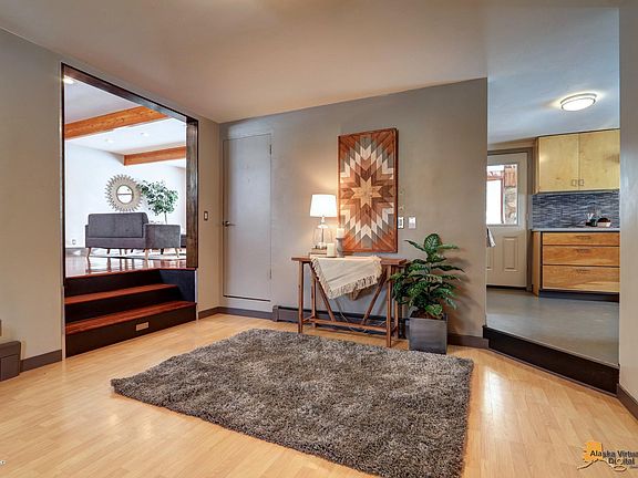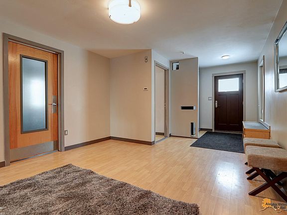 Eco-friendly, mid-century modern ranch home near Lake Hood. Contemporary style w/ Brazilian Koa hardwood floors, Blaze King woodstove insert w/natural stacked stone surround, two full baths with custom tile accents, stainless steel appliances & Alaska birch cabinets in the kitchen. LED lighting, extra insulation & other energy efficient upgrades. Sunny backyard on a culdesac with trail access.