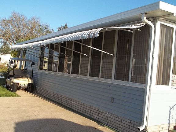Cozy partially furnished 1992 1 BR 1 BA 14X35 home with an 11X24 Florida room providing 857 sq. ft. of living space. And an inside 9X11.5 laundry/storage room for convenience. The kitchen features include black and stainless steel appliances and a larger 4x5 pantry with plenty of storage. The home has laminate flooring, newer AC, newer water heater, a new roof and replaced siding. There are 2 patio areas in back with one covered, has a 10X28driveway with a 14X20 awning covered extension, and another window awning coming soon. All This PLUS a golf cart! You have to see To appreciate. Call For an appointment TODAY. SB3825