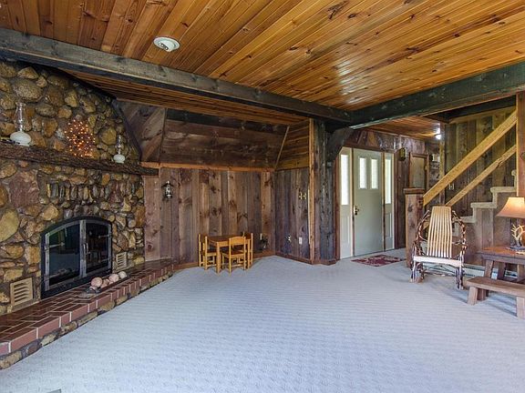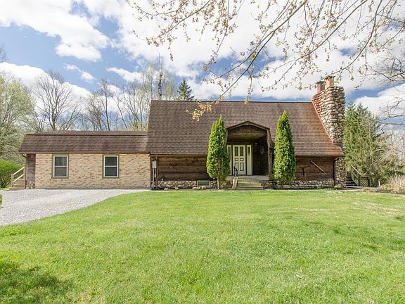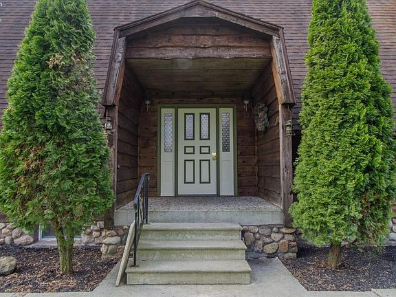 This home could be on HGTV! Over 6 ac of woods and privacy. Everything has been thought of in creating a NEW spacious and romantic master suite with a spectacular focal wall with an electric fireplace. Large master bath that boast an amazing tub, walk in shower, and walk in closest. The smoke detector is hardwired in and then blue toothed to the other alarms throughout the house. Home offers an open kitchen to dining room and living room with a beautiful stone wood burning fireplace and a second main floor master bedroom and bath. Walk out basement features rec/family room with wood burning stove. Enjoy sitting in your enclosed porch and listening to your large waterfall water feature while viewing blooming trees and wildlife. This is a must see. <br><br>