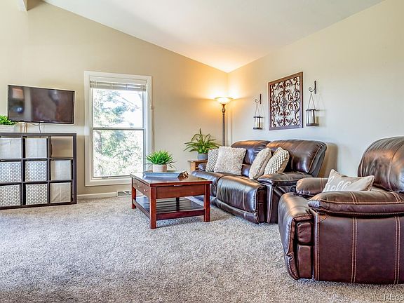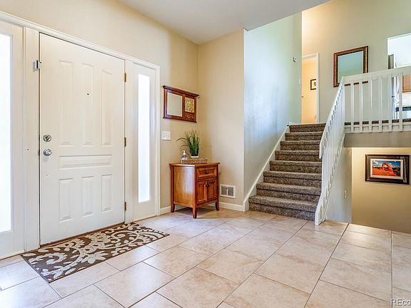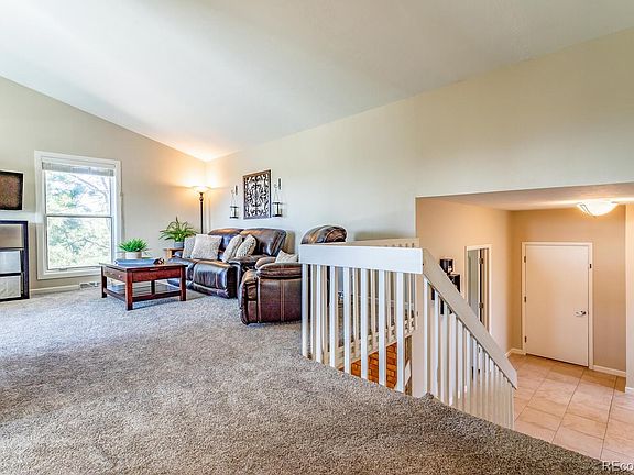 Amazing property just minutes from the Town of Castle Rock! Nearly .4 acre lot, great mountain views, open and bright floorplan - this home has it all!! Vaulted upper level with living room, dining area, and kitchen with granite counters, abundant stained honey maple cabinets, stainless appliances, and breakfast bar for additional seating and food prep area! Walkout to the HUGE Trex deck and enjoy awesome mountain views! The master suite boasts a sitting area, 2 closets, and a private bath with His and Hers vanities and a large custom shower! The study would also serve well as a guest bedroom! Cozy lower level with wood-burning fireplace, two bedrooms, a full bath, and walkout to the backyard! Mature pines provide privacy and shade, and there's plenty of space for kids and pets to play! Oversized 2 car garage, RV parking, plus a circle drive in front of the home! Award-winning Douglas County schools! You will not want to miss this home!!