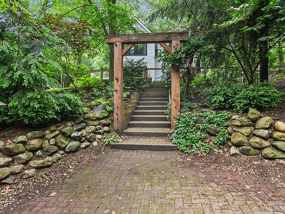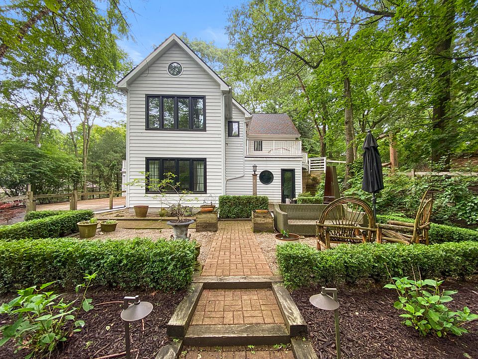 Experience the charm of Michiana Shores, steps to the beach and a stone's throw from Michigan. Walk through a garden gate, where you will enjoy a thoughtfully landscaped sanctuary that leads to the home of your dreams. Enter the foyer, where you'll be greeted by a library where you can enjoy reading alone or host a large cocktail party for the neighborhood. A private gym, full bath and a guest room complete this floor. Upstairs you will find yourself surrounded by light and nature. A cozy great room with skylights and beamed ceilings, hardwood floors and a fireplace for chilly evenings. A dining room with wet bar looks out onto the terraced gardens of the backyard and a large deck with fire pit and generous seating allows for larger gatherings. A modern kitchen with a large walk in pantry, stainless steel appliances and granite counter tops is perfectly situated to the great room. The primary en suite bedroom walks out onto a private newly constructed composite deck. The third bedroom and 3/4 bath complete this floor. The loft overlooking the great room provides enough space for a fourth bedroom, office or craft room.If you are looking to live in a beach community this is the place you will want to call home!