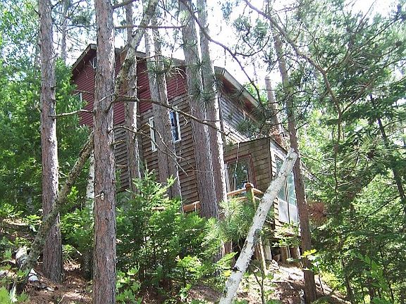FIRST TIME OFFERED! This vintage property is situated on a small hilltop with a long peninsula that juts out into the lake displaying some awesome sunsets! The land has a mix of trees with many red pines that accent the point. There is approximately 1,500 feet of frontage and about 4 acres of land. This 3 bedroom, 2 bath home needs a lot of TLC. Recently it has been a long term rental property. This fixer-upper house has 3 levels. The main level consist of master bedroom with a full bath, a kitchen that opens to the living room and has a vaulted ceiling. There is another full bath on this level. The second floor has 2 bedrooms. The finished basement has a rec. room with an older second kitchen, lakeside covered porch and a utility room. From the house, there is a trail that winds through the red pine trees and leads to the “Point” and also to the shoreline and pier. Wilson Lake is a great fishing lake. The property is located 7 miles northwest of Mercer and is close to the Turtle Flambeau Flowage area. Direct access to Rec. Trails!