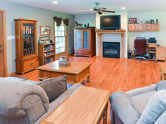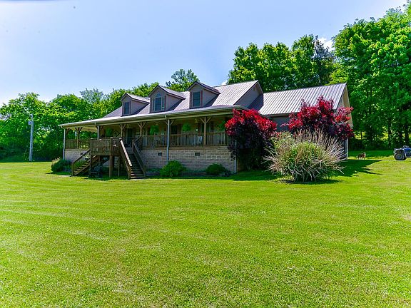 This rustic style 3 bdrm home is nestled on 50.98 picturesque acres w/spectacular views. The interior features venetian blinds, hardy wood heater, & a 947sq.ft. rec room w/two attached TV s that remain. There s also a pond, barn, & fenced-in perimeter.
