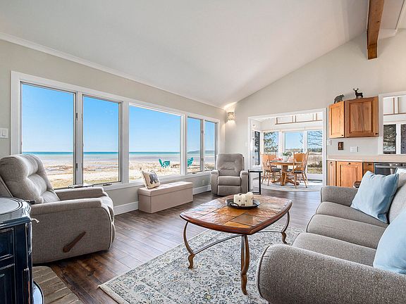 Captivating waterfront living with up to 130 feet of frontage! Nestled along the serene shores of Cecil Bay, Lake Michigan where adventure meets tranquility, and every day feels like a summer vacation. This property includes 1 additional vacant parcels and a meticulously remodeled 3-bedroom, 2-full bath ranch-style home offers a harmonious blend of modern luxury and natural beauty. From professionally remodeled interiors to new light fixtures and flooring throughout most of the home, every detail has been thoughtfully curated to enhance your living experience. Wake up to the gentle lull of waves and the sight of sun-kissed waters stretching as far as the eye can see from your Primary bedroom. Amazing views continue on from nearly every room with an abundance of natural light! A spacious living room featuring a huge picture window and