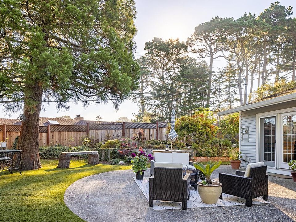 At the end of a quiet cul-de-sac in Carmel's Rancho Mar Monte neighborhood, enjoying ocean views from various points on the property, is this handsome, single story, ranch style home. The property sits on a park-like setting with the backyard as the focal point for most of the interior. This tastefully updated home features 3 bedrooms and 2 newly remodeled bathrooms, with an open floor plan between the kitchen, dining room, and living room. Enjoying an expansive 3/4 acre lot, the home flows effortlessly to the private backyard and greenspace beyond. Enjoy the lovely sunsets from the newly added deck and maybe create a garden or build a studio. Along with the extra space under the house, these areas await your imagination. This peaceful home is away from the hustle and bustle of the town, but is just a short drive to downtown Carmel-by-the-Sea's world-class shopping, dining, and beaches.