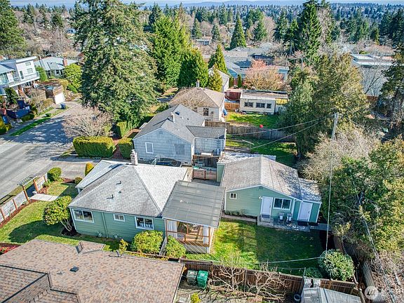 Perched at the top of the hill you'll enjoy views of the sound & mountains as you arrive home to this unique retreat. Curb appeal & a protected front porch welcome you home & the main house does not disappoint. There are 2 bedrooms & a beautifully remodeled bath, a spacious kitchen and eating space with open sightlines to the living area & you'll be delighted by the 3-season covered porch adding even more living space. The fenced rear yard & finished bonus space add more than meets the eye. And what a bonus! There is a sauna, 3/4 bath & flex-space to use your way. The oversized detached garage completes the package that is this charming abode. Plus, it’s located close to the famous Thistle stairs leading to Lincoln Park & the beach!