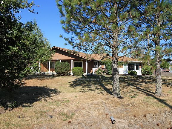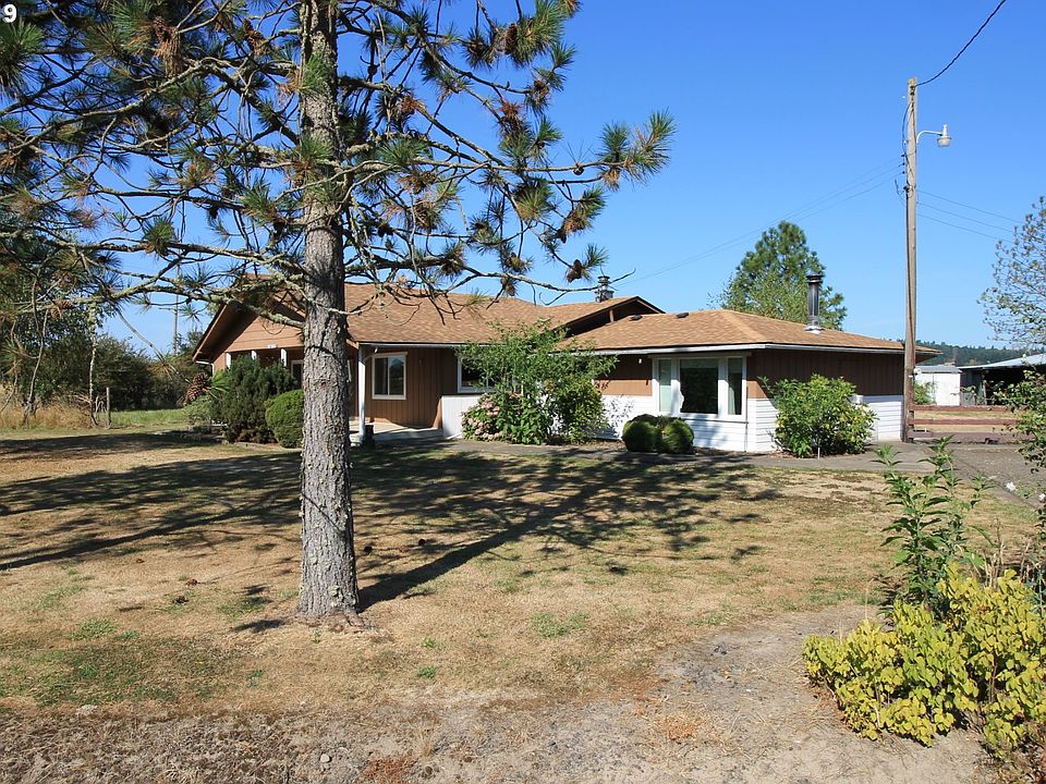 Small farm on Large farm. House sits on one acre with several outbuildings and remaining 76.60 acres is leased for grass seed. Lots of possibilities. Large bedrooms, area for office and covered patio.