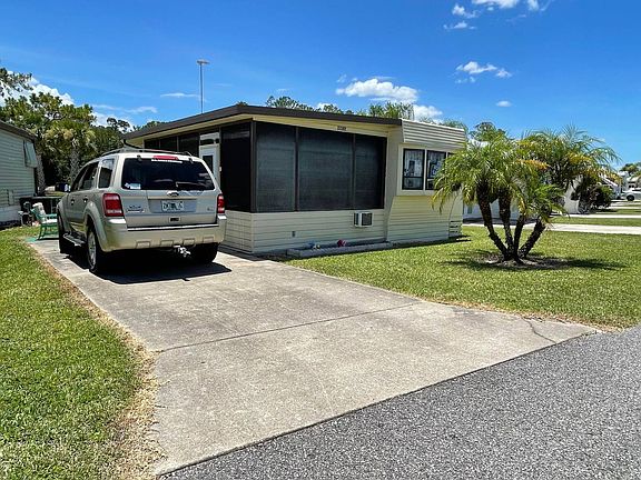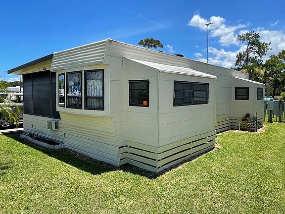 This is a one bedroom one bath with a Florida room. Florida room is extra wide and bright w/ carpeted floors, wall a/c and storage room in back. Inside the main home is cozy with updated flooring and paint. The main home has a roof air conditioner and a portable a/c in the bedroom. This home has two large tip outs for extra space. Won't last long.