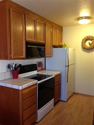 Bright upstairs end unit with vaulted ceilings, two spacious bedrooms and two full baths, gleaming pergo floors, kitchen is open to the dining area and living room, inside laundry area for side by side washer and dryer with extra storage, wood burning fireplace, one car garage plus additional parking, sliding glass door leads to the peaceful patio with an extra storage area, enjoy the low HOA dues of only $260 a month, well run complex, roofs and exterior painting approximately two years old, asphalt just sealed and painted, walk score of 71, fantastic commute location, close to BART and commuter train. Parkmont School Attendance Area - Excellent API School Scores! Regular sale - fast close is possible, Call today!