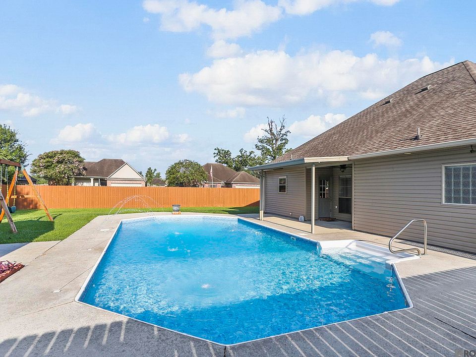 WELCOME to this beautifully maintained 3-bedroom, 2-bath home perfectly positioned on an OVERSIZED CORNER LOT in the heart of ASCENSION PARISH. Blending style, comfort, and function, this MOVE-IN READY property showcases MAJOR exterior UPGRADES including a 2023 ROOF, a 6-ft stained cedar privacy fence, and updated gutters with dual downspouts connected to French drains for both curb appeal and lasting durability. Inside, you’ll find fresh paint, commercial-grade engineered vinyl plank flooring, sleek 3cm quartz countertops in the kitchen and guest bath, and soft-close cabinetry, all enhanced by a whole-home water softener system. The major systems have been thoughtfully updated with a NEW HVAC system (interior and exterior units, 2024) and a 50-gallon water heater serviced in June 2025. Step outside into your private backyard retreat featuring a sparkling in-ground pool with a new liner (2024), a salt chlorine generator cell (2025), and a depth range from 3 to 8 feet, creating the perfect setting for entertaining, relaxing, or enjoying daily laps. This TURNKEY property offers a rare opportunity to own a beautifully upgraded home in one of Ascension Parish’s most desirable areas.