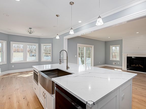 Enjoy the most amazing sunsets and water views from your master balcony in this custom 5 bedroom 3 bath new construction seashore colonial. No expense was spared as this home boasts 9ft ceilings 1st floor, custom gourmet kitchen with large center island, decorative moldings throughout, wide plank hardwood flooring, gas fireplace, custom closets the list goes on. Master suite with walk in custom closet, spa like master bath and balcony to enjoy the water views and most amazing sunsets. Exterior features paver driveway and walkways, pvc fencing for privacy, sod and sprinkler system. Close to beaches, Pier Village, parks, shopping, major transportation/ferry service to NYC. Be a part of a town everyone is talking about!