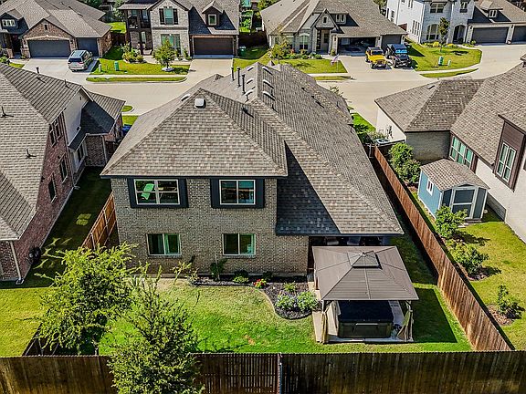 Beautifully landscaped backyard oasis to entertain friends and family with an extended covered pergola patio with gas hookup for the grill and Hot Tub purchased in Feb 2025 that will convey with property. Neighborhood amenities include a state-of-the-art fitness center, fully equipped community clubhouse with kitchen that is perfect for meetings and large gatherings, miles of hike-and-bike trails, fishing, two dog parks and a regional nature park adjacent to the community. You will also enjoy the Tot Lot center, splash park, Olympic size pool, cabanas, basketball courts and more. Monthly events help keep you involved socially! With quick and easy access to both I-30 and George Bush Tollway, you will find that everything you need is just a few minutes away. Welcome to what will easily be your favorite and forever home!
