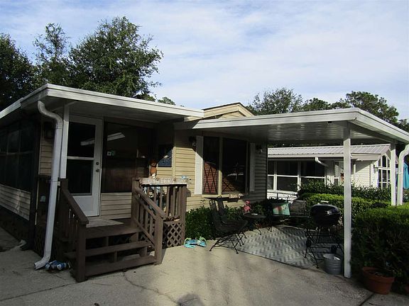 Exceptional Park Model in Spanish Cove! This home has a covered front patio, a golf cart carport. Driveway is concrete. This house is immaculate. Living room is open to the sunroom. It has a tiled walk in shower. Breakfast area in kitchen. Shed with washer & dryer. Spanish Cove amenities include year round pool, fishing pier, tennis courts, excerise building, 2 clubhouses and 24 hr security. Private road so you can run around in your golf cart. Public boat launch & pier up the road in Lillian. Come see this one!!!!