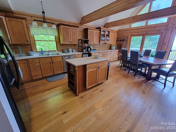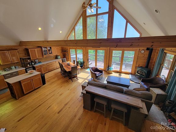 Welcome to your dream log cabin in a serene gated community! This stunning 3 BR, 2 BA home is the epitome of rustic charm, with a gorgeous open LR, dining, and kitchen on the main floor. Lower level boasts a second spacious LR, while the upper floor houses a luxurious bedroom suite with natural light and serene forest views.