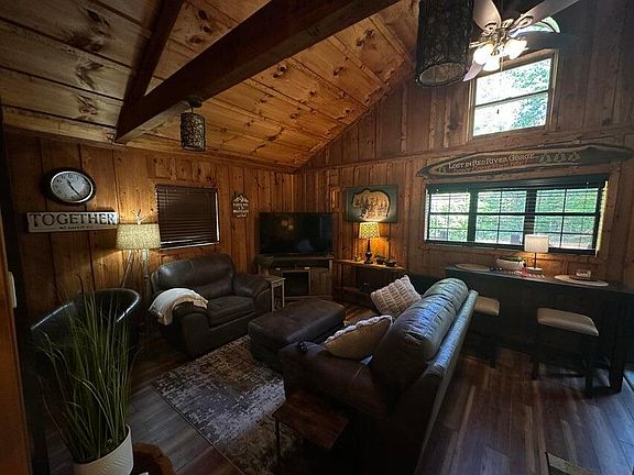 This beautifully remodeled cabin, tucked away in the heart of Cliffview Resort in the Red River Gorge is nothing but spectacular. With 2 bedrooms and 2 spacious bathrooms it is perfect for a family get away home or rental. The backyard is a great addition to this property as it has a lot of space for outdoor activities and offers a firepit to sit around at night.