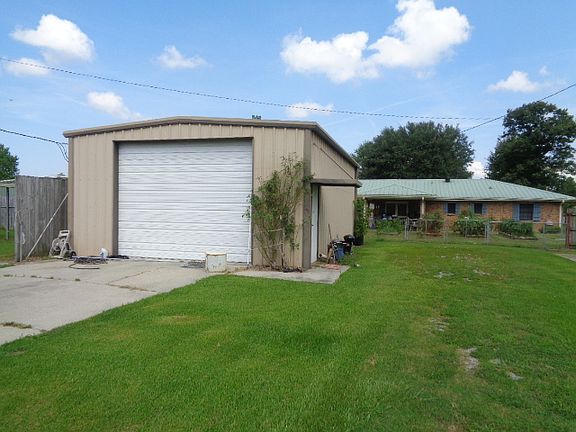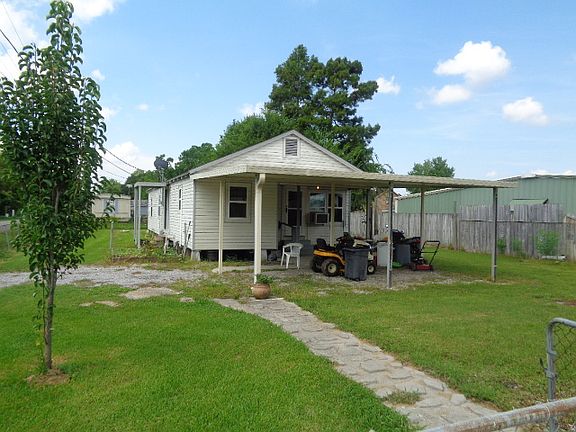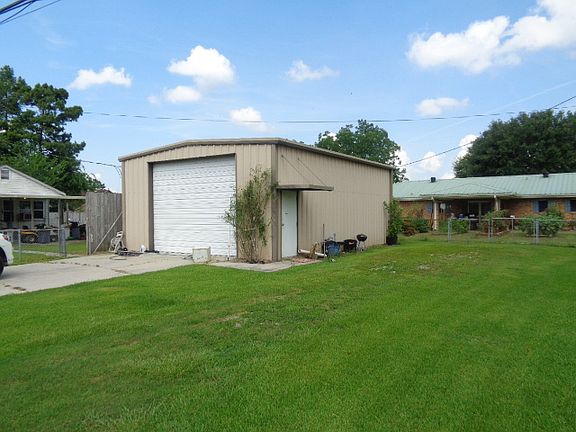 Great property on three lots for starter home or investment opportunity. Fresh paint and newly remodeled bathroom, new roof. Electric fireplace to remain. House and 32x16 above ground pool (also remains) completely fenced in. Also, 24x33 detached metal building. Flood insurance transferable, flood zone and square footage to be verified by buyer.
