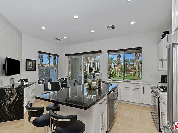 PRICE REDUCTION ALERT! Seller is motivated! This new pricing offers a fantastic opportunity for qualified buyers and investors to own this beautiful, fully furnished home. Prepare to be wowed by this drop-dead gorgeous 3-bedroom, 3.5-bath home in the prestigious Indian Ridge Country Club, perfectly positioned on the 4th hole of the Grove course with stunning mountain views. This designer-renovated Acacia 4 showcases a spacious, open floor plan, perfect for effortless living and entertaining. The kitchen is a true showstopper, featuring gleaming granite and Calacatta marble countertops, paired with stainless steel KitchenAid appliances. The primary suite is a serene retreat with its own private courtyard, while the spa-like bathroom is a true wow factor, boasting a dual vanity, granite countertops, a freestanding tub, and an expansive, exquisitely designed shower that transforms your daily routine into a luxurious experience. Both additional ensuite guest rooms have been beautifully updated, providing comfort, privacy, and style. The front guest room, currently used as a den/office, provides flexible living space. The garage is upgraded with epoxy floors and a wall-mounted air conditioner, completing this luxurious package. Club membership is available with no wait. This home is a must-see to fully appreciate its exceptional beauty and features! Furnished per inventory list.
