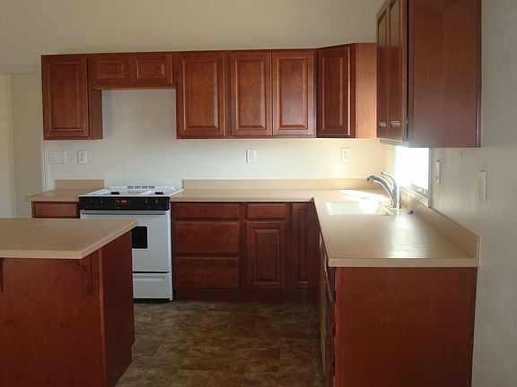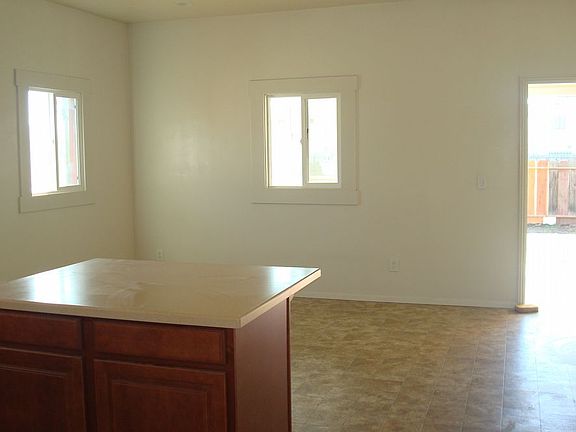 New energy efficient windows, cabinets, carpets, paint and other flooring and bathroom fixtures. All the rooms are on one floor. Very large open kitchen and family room area, lots of kitchen cabinets, center island. Separate dining room and living room, both large. High ceilings, lots of light. Detached double garage. There will be two assigned parking spaces in the back of the house. Two vehicles can also park in front of the garage. Separate laundry room off garage with washer and dryer hookups. Completely fenced. Yard is rough, but owner plans to make some improvements.