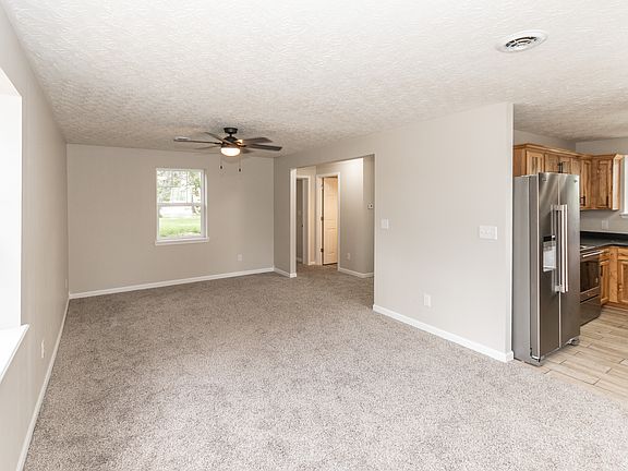 WOW -- Better than new! Nearly 1250 sf of living area in this lovely single story. Features 2 bedrooms, 2 full baths, den, mudroom and spacious living room. There is a 1 car-attached carport, 2-car detached garage w/ opener and patio overlooking private yard area. Updates include new plumbing, 200AMP electric, gas heat and C/A. All new SS appliances. Quiet living in Knightstown. Offers special amenities; are the new windows, new roof and new HVAC. Immediate possession.