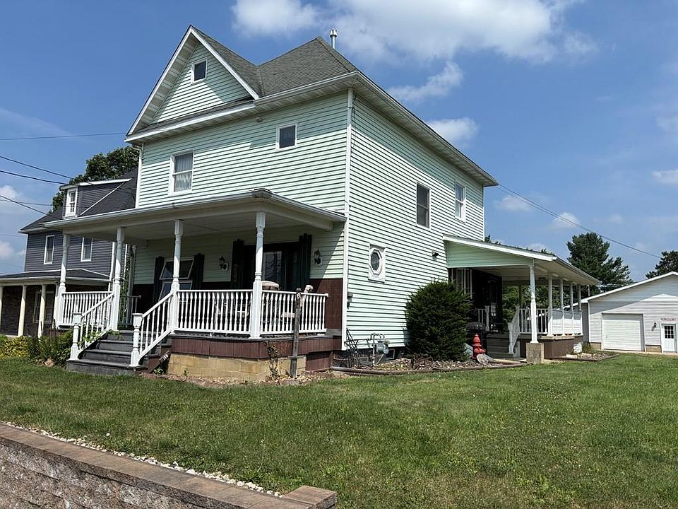 Check out this spacious home where you can relax on the inviting front porch, chat with neighbors, or unwind on the semi-private, wraparound covered deck overlooking the backyard. Inside, the main level offers many updates, including a convenient first-floor laundry and a generous living room. Upstairs, you'll find three large bedrooms plus a walk-up attic for extra storage or potential living space. The standout feature is the exceptional garage, complete with separate electric service — perfect for entertaining, working on projects, storing all your toys, or even running a small business. With plenty of off-street parking and a large yard, this property provides space and flexibility for whatever you choose to do.