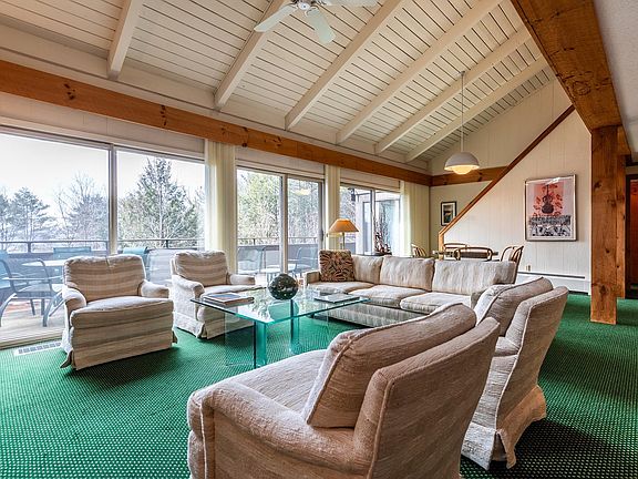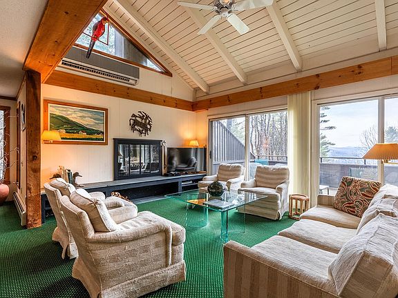Premier location on the upper side of Fairbanks Turn, this expansive home on a private wooded lot offers a beautiful setting for either a permanent residence or four-season vacation get-aways. As a Quechee Lakes resident, enjoy easy access to the Quechee Club’s world-class amenities: two championship golf courses, tennis, pickleball, paddle tennis, private ski hill, in-door and out-door pools, lake activities, fitness center, and a variety of dining options at the clubhouse. With close proximity to Woodstock, this sun-filled contemporary has so much to offer. The crisp, bright spaces flow beautifully for entertaining or daily living. The spacious open concept living and dining area with sweeping cathedral ceiling is anchored by an elevated wood burning fireplace and a wall of glass leading to a oversized deck with lovely long-range mountain views. The generous main level primary suite with private bath has loads of closet space. There are three bedrooms on the second floor along with two bathrooms, and the large bonus loft provides flexibility as an additional bedroom, playroom or office. Add a ground level bonus family room, laundry, storage and an oversized two car garage, this home offers lots of possibilities. Air conditioning, high-speed internet, security system and plenty of parking. Don’t miss your opportunity to enjoy Vermont living at its finest!