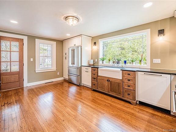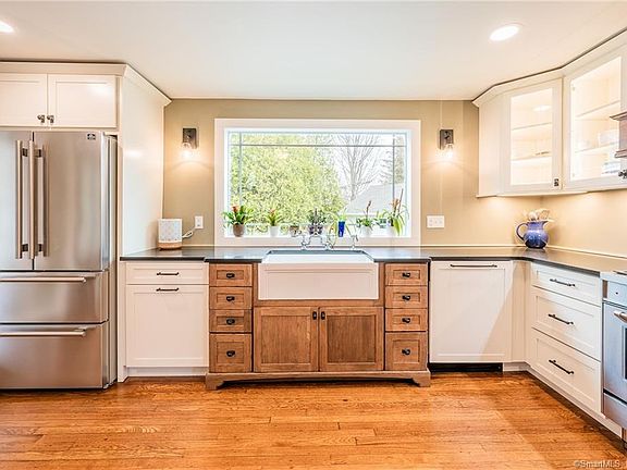 This custom designed bungalow-style farmhouse has been lovingly remodeled with all the bells and whistles! This gorgeous property is truly an oasis, set on just over an acre, and tucked back off the road among mature plantings and a babbling spring-fed brook that was used in past generations to cool freshly bottled milk from the farm. The home itself is spacious, stylish, and charming, with hardwood floors throughout the first floor. If you like to cook and entertain, youll love the spacious farmhouse sink, 36 5 burner gas cooktop stove and pot filler, electric oven, French-door fridge, and the wet bar/coffee area. Bright and open LR and DR with great views in all directions. Large first floor MBR Suite, complete with a walk-in closet, electric fireplace, separate sitting area/workspace, a beautiful bathroom with both a soaker tub and stand-up shower stall, double sinks, and a French door leading to your own private porch with a swing. First floor also has laundry room, large pantry, mudroom, and a full bath. Upstairs has 2 additional BRs and an office space. Plenty of room in the basement for storage or possibly more living space. Whole house generator hookup and 50 AMP RV hookup. Enjoy the most amazing views from one of the porches, relax in the pool or by the firepit. Youll feel like youre in the middle of nowhere, yet you are only a mile from Mohegan Sun, shopping, restaurants and I-395. Dont miss this gem.
