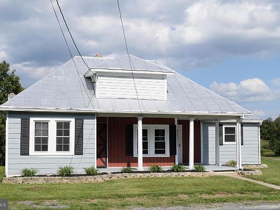 No HOA! Great Bungalow style one-level living. Large front porch, great for enjoying the great weather. Enter into a large Great Room adjacent to the oversized Kitchen that includes a space for a large table. The French Doors in the Great Room leads to the Covered Rear Porch that could easily be screened in. The Great Room has a Coal-pellet Stove that is large enough to heat the house and provides supplemental heating to the electric baseboard heat. Off the Great Room is BR 3 which could be a great home office accessed through another set of French Doors. The Hallway to BR 1 and BR2 includes space for a Washer and Dryer. The Full Bath is off this Hall. Situated on over 1 2 acre lot with no restrictions, there are two storage sheds (8x8 and 12x12) and room for a garden, garage, or a she-shed! This home is close to Route 522 and 6 miles to Winchester.