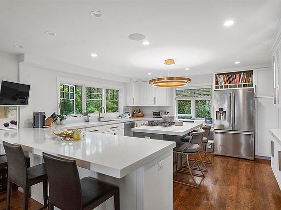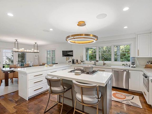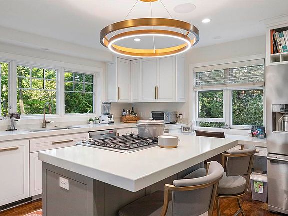 This stunning 4 bedroom, 4 1/2 bath home is ideally located on the corner of Glenn Drive, down the street from the entrance to Harbor Point. Just a half mile from the center of downtown Harbor Springs, tall cedar hedges ensure your privacy and surround the spacious front lawn and beautiful landscaping. The driveway offers ample parking for entertaining. The house features: Guest quarters on the lower level with a kitchen and family room, all of which open onto a stone patio with a tranquil pond and fountain. The 2nd floor has cathedral ceilings, a gourmet kitchen, a half bath, dining room, living room w/gas fireplace, wood floors and a master bedroom w/gas fireplace & bath, all which open onto a relaxing wrap-around covered porch with views of the bay. The 3rd floor offers more cathedral ceilings, 2 spacious ensuite bedrooms and a cozy loft above, which has a gas fireplace and a view of the bay. The immaculate, detached, 2 car, heated garage has a finished room above. This property is a part of the Glenn Woods Association and Glenn Drive Association..