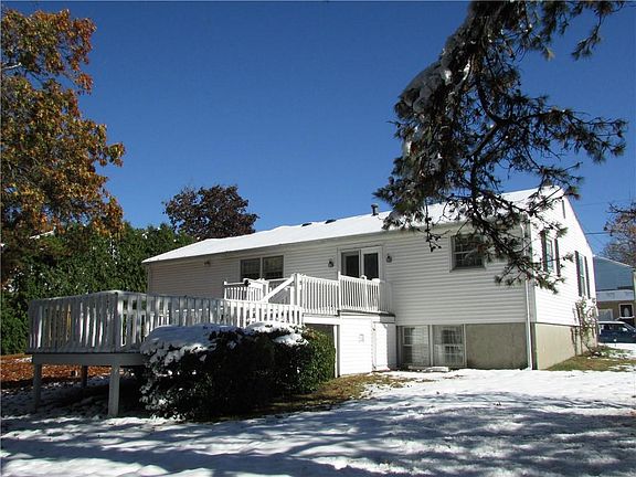 Located in the heart of East Woonsocket, 3 bedroom vinyl sided ranch, double bay windows allows sunlight to fill the kitchen and living room, Look at the amount of oak cabinets in the kitchen, corian counter tops, appliances to remain, replacement vinyl windows, finished walk out lower level with additional living space, hardwoods, gas heat, newer electric service.Sliders to deck, All situated on a 1/2 acre+ lot which boast unexpected privacy, double wide driveway for off street parking plus garage.