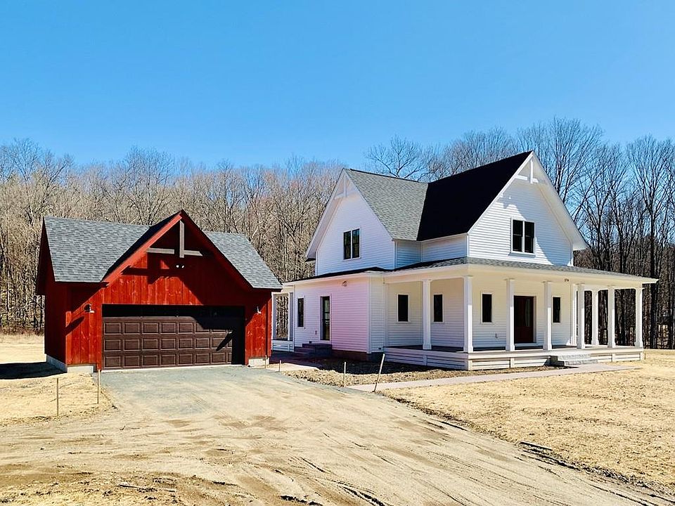 A casual elegance is found throughout this handsome, newly constructed Farmhouse style home built by MSM Builders. Sporting an open floor plan with accents of ships lathe throughout and highlighted with hand nailed pine floors, this home is perfect for everyday living and entertaining. A sweeping back porch adds a new dimension to enjoying the outdoors as does the peaceful front porch. The floor plan is flexible and offers a master bedroom with bath on the first floor including laundry. The 2 car detached garage, large windows, crown moldings and built-ins are only a few of this homes many desirable features. Located within minutes of Amherst center and area colleges and still offering a bucolic, country setting - it's the perfect place to hang your hat. Make this your dream home.
