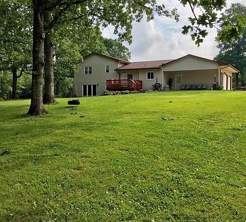 Beautiful Home on Peaceful Country Setting! Home has updated kitchen with Granite Counter tops, Stainless Steel Appliances, Center Island, Soft close cabinet doors and french country deep sink!! The front room is currently used as a formal dining room, however, could be a formal living room. Large Cozy Family Room with Wood-burning Fireplace, with French doors that walk right out to the patio. Master bedroom, Bathroom, and 2 other other nice bedrooms on upper level. Walk out and sit on the deck and watch wildlife galore!! Home has attached Heated and Cooled 2 car garage. Amazing 1100 sq ft detached Garage/Storage area that comes with Storage, Man Cave Area, Dog washing Area with tub and water heater and Pavilion area!!! Gorgeous 5 Acres, that has it all, beautiful lawn, wooded area and nice cart paths for driving through the woods!. Great Location excellent for commuting, just 1 mile from I- 44 and only 1 miles from River Access and 2 miles to Meramec Caverns.