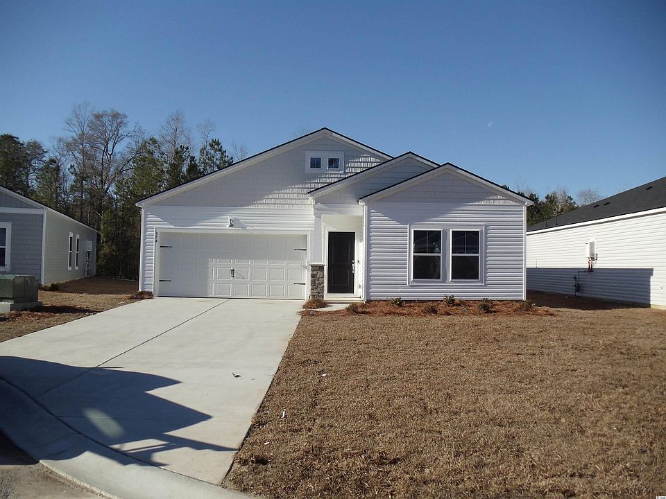 Sold Dover floor plan features 3 bedrooms, 2 bathrooms with a spacious Owner's Suite, walk in closet and secondary bedrooms. This open concept home hallmarks 36" stylish white cabinets, 3 x 6 subway tile back splash, granite in the kitchen, Shaw laminate flooring in the main living areas, GE stainless steel appliances including a gas range. The Owner's suite bathroom highlights double bowl sinks, elevated vanity, 5' walk in shower. This home also features LED recess lighting, Moen faucets and towel hooks, elongated toilets with soft close lids, and a Rinnai tankless water heater. Pictures are of a previously built home that may have additional upgrades and are for illustrative purposes only. Longview has a low HOA fee but still offers a beautiful community pool! we are about 15-20 minutes from the beaches of North Myrtle Beach yet located in a quiet setting with large homesites. Pictures are a representation.