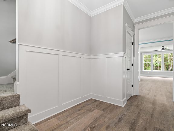 This delightful coastal home is nestled into the sought after Summerhouse on Everett Bay community on the ICW with quick access to the beaches of Topsail. Backing to woods and fronting to water, this 3 bedroom 2 ½ bath home includes a covered front and rear porches. The upgraded trim package, custom lighting and premium flooring will make you feel right at home. Loaded with special features, the LOWER LEVEL has 5-panel doors with white classic cottage trim as you enter an inviting foyer with craftsman wainscoting. The open dining room/kitchen has a large island with seating for four, solid wood cabinets, stainless steel appliances, granite countertops and tile backsplash. The pantry is adjacent to the kitchen and is equipped with adjustable shelving. The living room has a recessed electric fireplace with multiple flame options to fit any season or color scheme, driftwood logs, glass crystal media and it is surrounded with shiplap walls recessed lighting for the coastal look so many folks love wile 8-foot-high sliders access the porcelain-tiled patio with its private wooded view. Also located on the lower level is a garage entry with a custom drop zone, powder room and a large storage closet. The UPPER LEVEL also has 5-panel doors and white classic cottage trim and an office/loft with a highly desired sunset water view. The owner's suite has recessed lighting with a raised ceiling, large walk-in closet with lots of shelving and a gorgeous ceramic tile shower with frameless glass door and vanities with shiplap. There are two additional bedrooms with a shared bathroom on this floor and a large laundry room with base and upper storage cabinets. The EXTERIOR has a coastal appeal with board and batten and lap siding. The doors and windows are enhanced with craftsman trim and the siding is painted Beautiful Morning blue with a white trim accent. OTHER HOME ENHANCEMENTS include storage closets, custom coastal lighting package, ceiling fans, large garage with 16-foot door, attic storage, high quality paint inside & out, professionally designed landscaping and a zoned irrigation system. Add in all the SUMMERHOUSE AMENITIES -- 6 lakes, spectacular clubhouse with billiard room, bar, full kitchen, resort style swimming pool, fitness center, day docks with fishing and crabbing platform and canoe/kayak launch, boat ramp, boat storage, tennis courts, basketball courts, 9 miles of running/hiking trails, playground, open air pavilion, picnic area and fire pits, and this could be the home to make all your coastal living dreams become a reality. Come see this home while it is still available!
