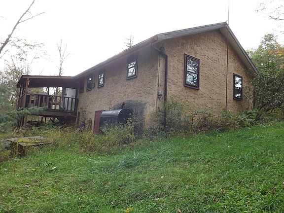 Small ranch home/cabin in a wooded setting with a small pond on nearly 3 acres. 2 bedrooms and 1 bath, new wood/coal stove, covered porch, workshop/storage building. Property needs clean up and some TLC, but has potential. OGM rights will transfer, and seller is motivated.